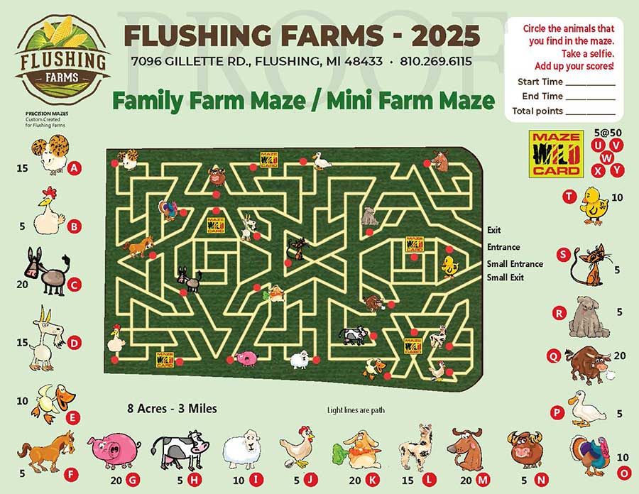 Flushing Farms features three exciting corn mazes—from easy strolls to expert-level twists and turns—designed for all ages and adventure levels.